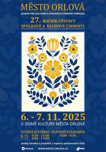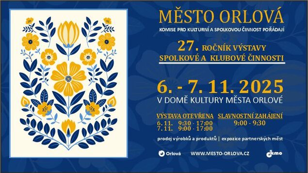 Město Orlová a Komise pro kulturní a spolkovou činnost vás srdečně zvou na tradiční výstavu spolkové a klubové činnosti, která se uskuteční v Domě kultury města Orlové.