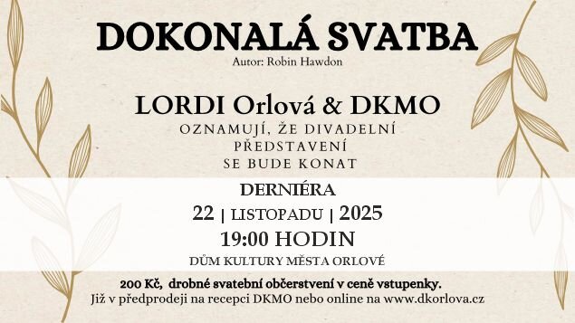 Situační komedie Dokonalá svatba od Robina Hawdona plná neuvěřitelných zvratů v podání amatérského divadelního spolku LORDI Orlová bude určitě dobrou volbou pro sobotní podvečer.